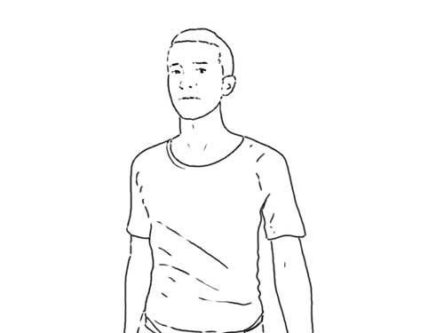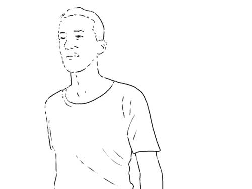Erst ab einer gewissen Distanz ist ein Mensch sichtbar, spürbar und ansprechbar. Durch die Reduktion der Bildinformation auf den Strich findet eine Verstärkung und Verdichtung der Begegnungssituation statt. Jede Regung, jede kleinste Veränderung beim Vorbeigehen wird verstärkt wahrgenommen."